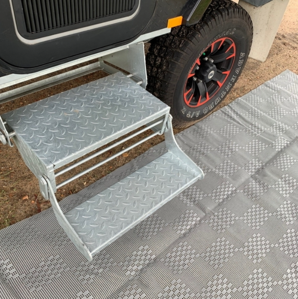 PVC foam matting stands out as the most economical flooring option, offering enough weight to stay flat without the need for pegging, and a softer feel underfoot compared to other options in the market. It’s perfect for adding comfort and convenience to your outdoor living setup.